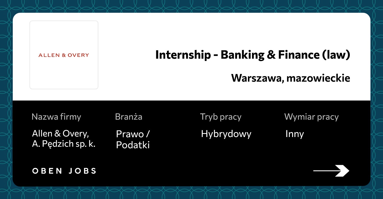 Jeśli chcesz zdobyć doświadczenie oraz rozwijać się w profesjonalnym zespole Banking & Finance, świadczącym usługi dla polskich i międzynarodowych klientów, zapraszamy do aplikowania.